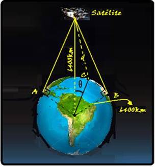 b) Suponha que o ponto C da figura seja tal que cosθ= 3/4. Determine a distância d entre o ponto C e o satélite.