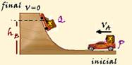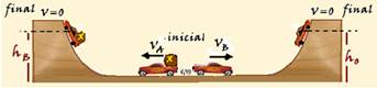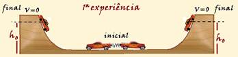 altura máxima ho a energia por ele armazenada é somente a energia potencial gravitacional --- E’Mf=mogho --- como são 2 carrinhos --- EMf=2mogho --- teorema da conservação da energia mecânica ---EMi=EMf --- Epe=2mogho.