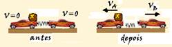 b) Utilizando o teorema da conservação da quantidade de movimento --- Qantes=m1V1=m2V2=m1.0 + m2.0=0 --- Qdepois=m1.V1 +