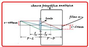 04- a) Câmera analógica --- distância entre a lente e o filme (imagem) é P’=D --- a distância L entre a lente e o objeto é P=L --- a altura máxima da imagem deve ser a altura máxima do filme que é de i= - 24mm (negativa porque toda imagem real é invertida)