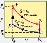 05-Neste ciclo você tem ---Trecho AB --- isotérmica de expansão --- trecho BC --- isocórica ou isovolumétrica --- trecho CD