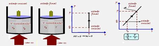 W=P.0 --- W=0 --- ΔU = Q – W --- ΔU=Q – 0 --- ΔU=Q --- assim, todo o calor (Q) recebido pelo sistema é igual à sua variação de energia interna (ΔU)