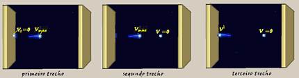 1o trecho --- o elétron é acelerado a partir do repouso (Vo=0) em movimento progressivo (velocidade positiva) até atingir a velocidade máxima (Vmáx);