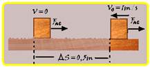 (V=0) após percorrer a distância ∆S=0,5m --- cálculo da aceleração de retardamento --- Torricelli --- V2=Vo2 +2.(-a).∆S --- 02 = 12 -2.a.0,5 --- a=1m/s2 --- na direção do movimento a força resultante sobre o bloco é a força de atrito Fat --- 2a lei de Newton --- FR=m.a=Fat --- Fat=2.1=2N --- Fat=μN=μP=μmg --- 2=μ.2.10 --- μ=0,1.
