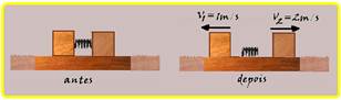 c) Utilizando o teorema da conservação da energia mecânica, enquanto a mola está comprimida a energia total (mecânica) armazenada é a energia potencial elástica que vale --- EMantes=Epe=kx2/2 --- depois que a mola é liberada e cada bloco se move