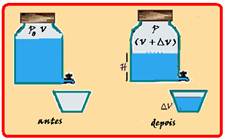 b) Veja a figura abaixo que mostra a pressão e o volume do ar contido no recipiente antes e depois do volume ∆V de água ser