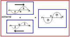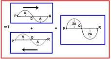 Observe também que, em todos os instantes, todos os pontos compreendidos entre P e Q e entre Q e R, estão em constante movimento, subindo e descendo, em interferência construtiva, e sua amplitude será a soma das amplitudes das ondas constituintes. Esses pontos são chamados de ventres..