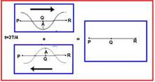 O intervalo de tempo entre uma figura e outra é de um quarto de período (T/4), ou seja, entre cada intervalo a onda percorreu um quarto de comprimento de onda.