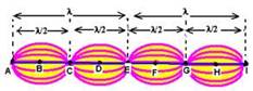 Observe na figura abaixo, que os pontos A, C, E, G e I são nós e que os pontos B, D, F e H são ventres.