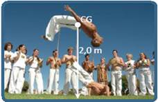mortal de costa. Considere que este capoeirista tenha massa igual a 60 kg e que o Centro de Massa (CG) no instante considerado na foto esteja a uma altura do chão igual a 2,0 m e aceleração da gravidade igual 10 m/s2.