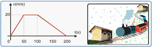 O deslocamento do trem, no intervalo entre t1=50s e t2=100s, e a aceleração no instante t = 20 s valem, respectivamente,