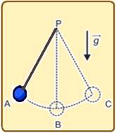 O pêndulo de um relógio é constituído por uma haste rígida com um disco de metal preso em uma de suas extremidades. O disco oscila entre as posições A e C, enquanto a outra extremidade da haste permanece imóvel no ponto P. A figura abaixo ilustra o sistema.