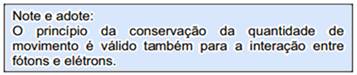 Um fóton, com quantidade de movimento na direção e sentido do eixo x, colide com um elétron em repouso.