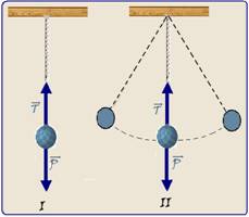 04- I. Verdadeira --- em (I) ela está em repouso, equilíbrio estático e FR=0 o que implica que T=P=mg --- em (II) ela