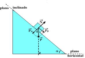 Α é o ângulo de inclinação do plano. Como
