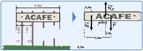 pólo (eixo de rotação colocado em N2) --- cálculo do momento de cada força em relação ao pólo --- MN1= - N1.d1= - N1.1,0 --- MN1= - 1,0.N1 --- MN2= N2.d2= N2.0 --- MN2=0 --- MP= + P.d= 1000.0,5 --- MP= 500N.m --- equilíbrio de rotação --- a soma dos momentos de todas as forças deve ser nula --- - 1,0.N1 + 0 + 500=0 --- N1=500N (II) --- (II) em (I) --- N2 = 500 + 1000 --- N2=1500N --- R- C.