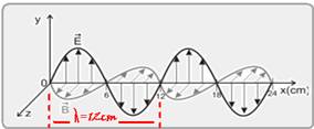 06- I. Correta --- A figura fornece o comprimento de onda que é de λ=12cm=12.10-2m --- c=V=3.108m/s ---