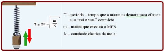 06- O período T desse MHS é fornecido pela expressão abaixo --- substituindo m=0,08kg, k=0,5 N/m e π = 3,14 na