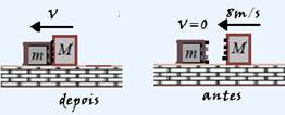 V’=6m/s --- (velocidade comum dos dois blocos que se movem juntos após o choque).