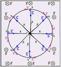 sempre dirigida para o centro de uma circunferência de raio R. Assim, a carga q realizará um movimento circular uniforme com velocidade de intensidade constante .