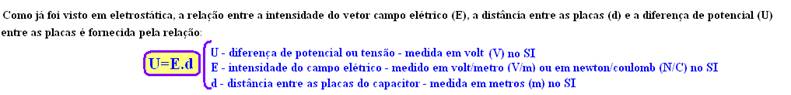 C=Q/E.d --- observe nessa expressão que a capacidade (capacitância) C do capacitor é inversamente proporcional à distância entre as placas.