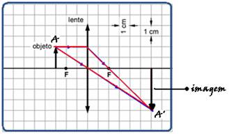 1a – Traçando os raios de luz e determinando geometricamente a imagem (figura abaixo):