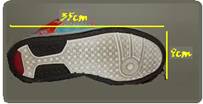 b) Avaliando a área da sola de um tênis como um retângulo de 35cm=0,35m de comprimento e 9cm=0,09m de largura